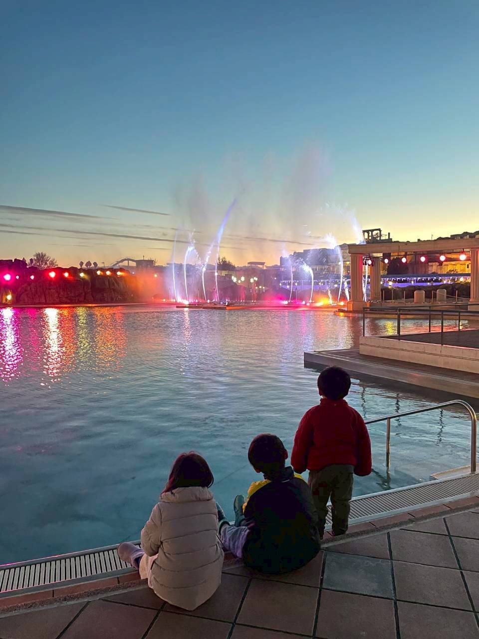 子供向けアトラクションが豊富で、年末とは思えないほど混みすぎず、親も子も大満喫。夜には園内が綺麗にライトアップされ、噴水ショーでは子供たちが思わず無言で見入るほどでした。