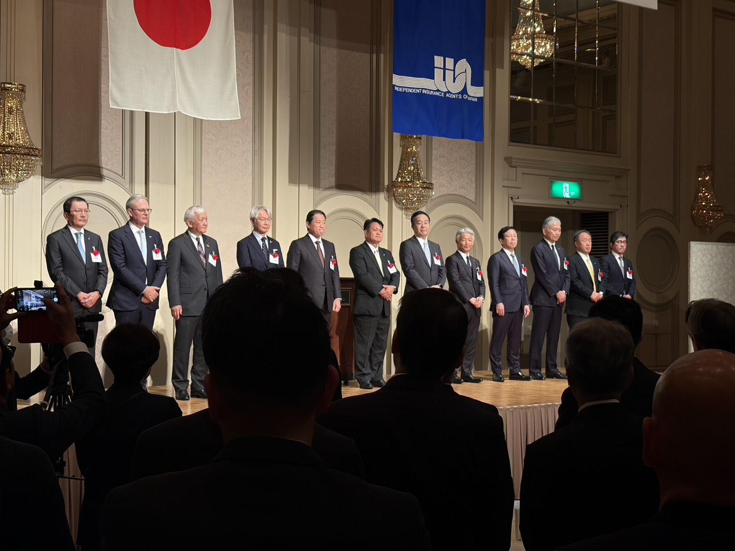 懇親会では、12社の損保会社の社長が登壇。